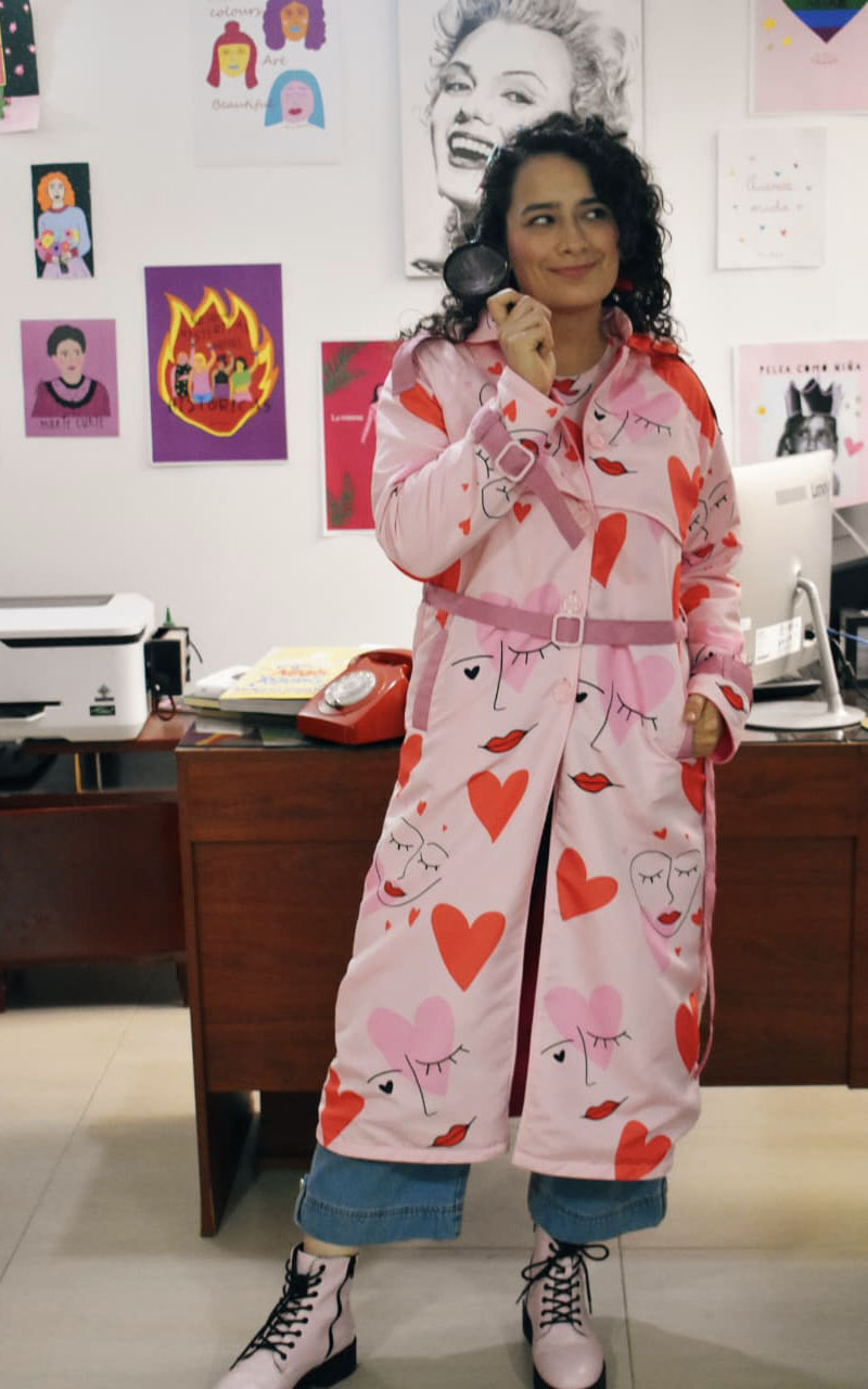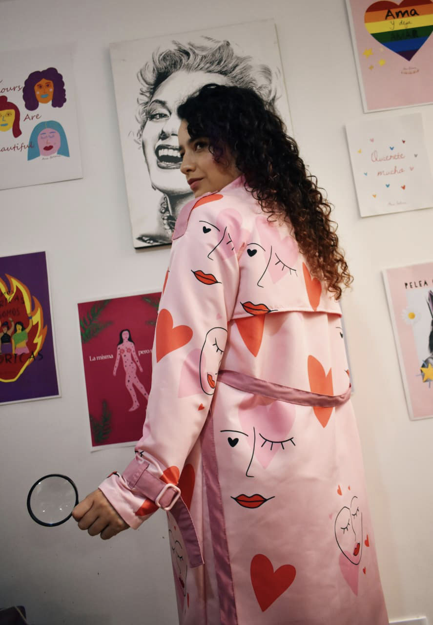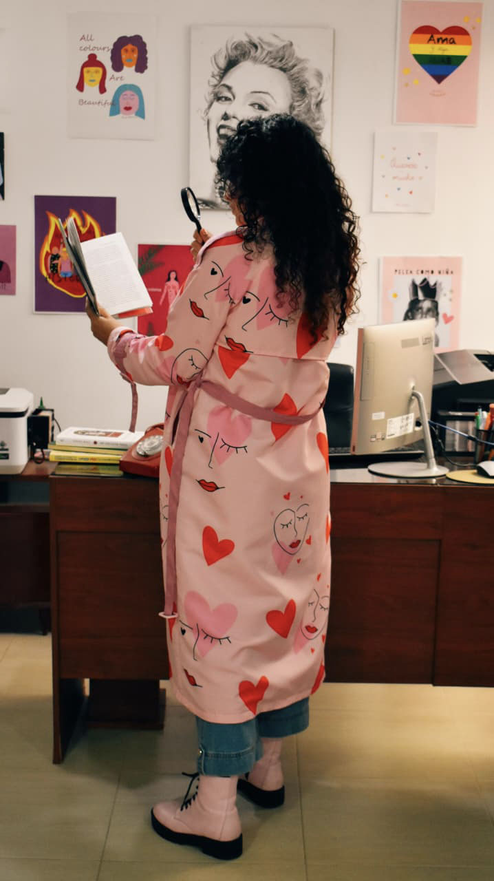 - Abrigo elaborado en tela impermeable. Es forrada por la parte interna y tiene bolsillo interno.