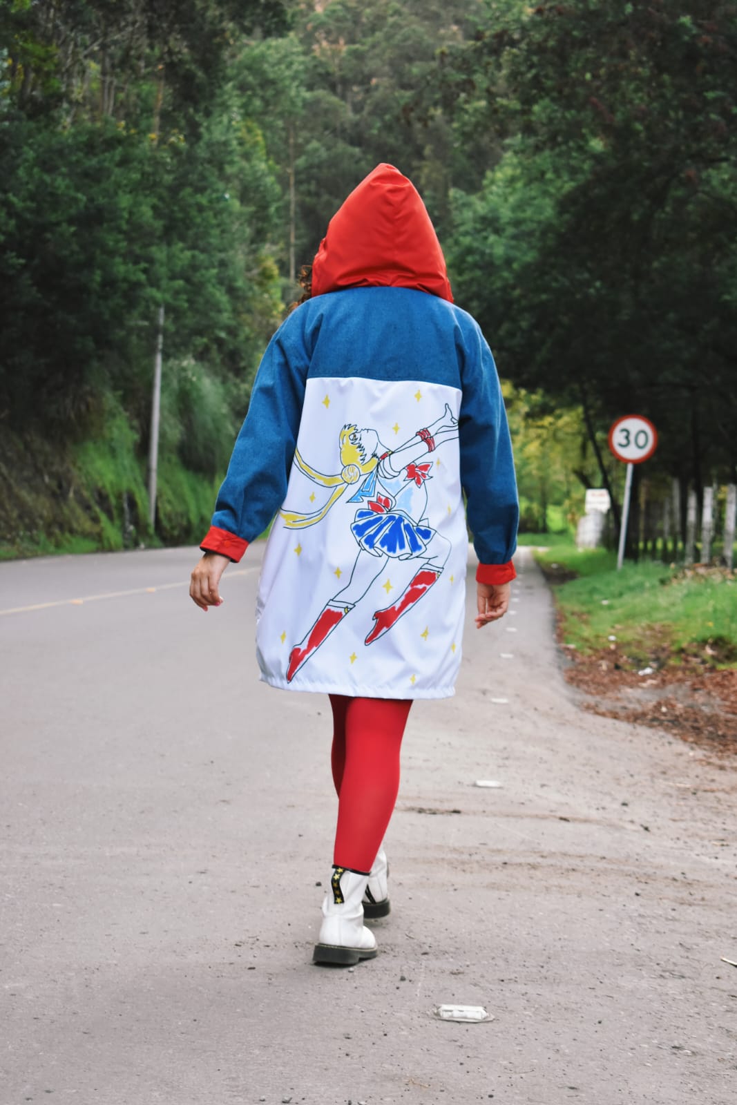 Composición: Forro tela poliéster- parte externa 80% impermeable 20% Jean