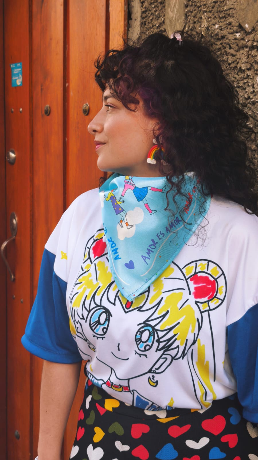 Las pañoletas puedes usarlas en el cuello, en la cabeza o como accesorio.